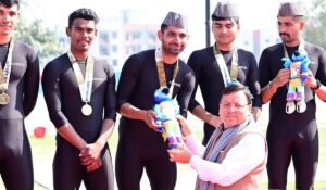 हल्द्वानी : 38 में राष्ट्रीय खेलों में हल्द्वानी के गौलापार स्टेडियम में चल रही तैराकी और खो-खो...