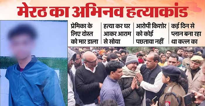 मेरठ। चेहरा मासूम, उम्र 16 साल, लेकिन कारनामा पेशेवर अपराधी से भी ज्यादा क्रूर। आरोपी ने दोस्त अभिनव के सिर पर हथौड़े से अनगिनत वार किए। चेहरे को बुरी तरह कूच दिया। आंखें, दांत और सिर का पता ही नहीं चल रहा। जिसने भी अभिनव का शव देखा वह कांप गया। रोहटा रोड वर्णिका स्टेट निवासी हत्यारोपी किशोर और अभिनव के बीच तीन साल से दोस्ती थी। दोनों अलग-अलग स्कूलों में पढ़ते थे। आरोपी ने 12वीं और अभिनव ने 11वीं कक्षा में पंजीयन करा रखा था। वे आईआईटी की तैयारी कर रहे थे। दोनों साथ ही कोचिंग जाते थे।