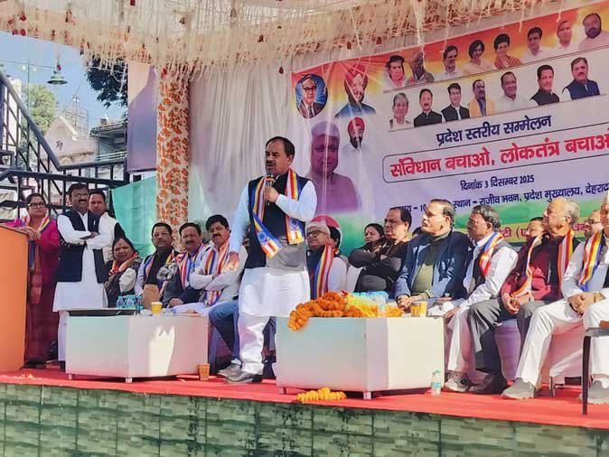 कार्यक्रम के दौरान पूर्व मंत्री हरक सिंह रावत ने कहा कि भारत के आज के स्वरूप और स्थिरता का श्रेय संविधान को ही जाता है। उन्होंने कहा कि अगर भारत में संविधान न बनाया गया होता, तो देश की स्थिति पाकिस्तान और बांग्लादेश जैसी अस्थिरता में फंस सकती थी। उन्होंने कांग्रेस कार्यकर्ताओं से आग्रह किया कि लोकतंत्र की बुनियाद को मजबूत रखने के लिए उन्हें संगठित होकर सामने आना होगा, क्योंकि संवैधानिक संस्थाओं की रक्षा किसी एक व्यक्ति या पद की जिम्मेदारी नहीं, बल्कि पूरे समाज और राजनीतिक नेतृत्व का साझा कर्तव्य है।