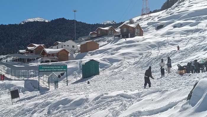 बर्फबारी के बाद औली के नज़ारे बेहद आकर्षक हो गए हैं। ठंड के बावजूद देश के कोने-कोने से पर्यटक यहां पहुंच रहे हैं और स्कीइंग समेत बर्फ से जुड़े रोमांचक अनुभवों का आनंद ले रहे हैं। कृत्रिम झील के ऊपर बर्फ की मोटी परत जम गई है और उसके आसपास भी चारों ओर बर्फ फैली हुई है।